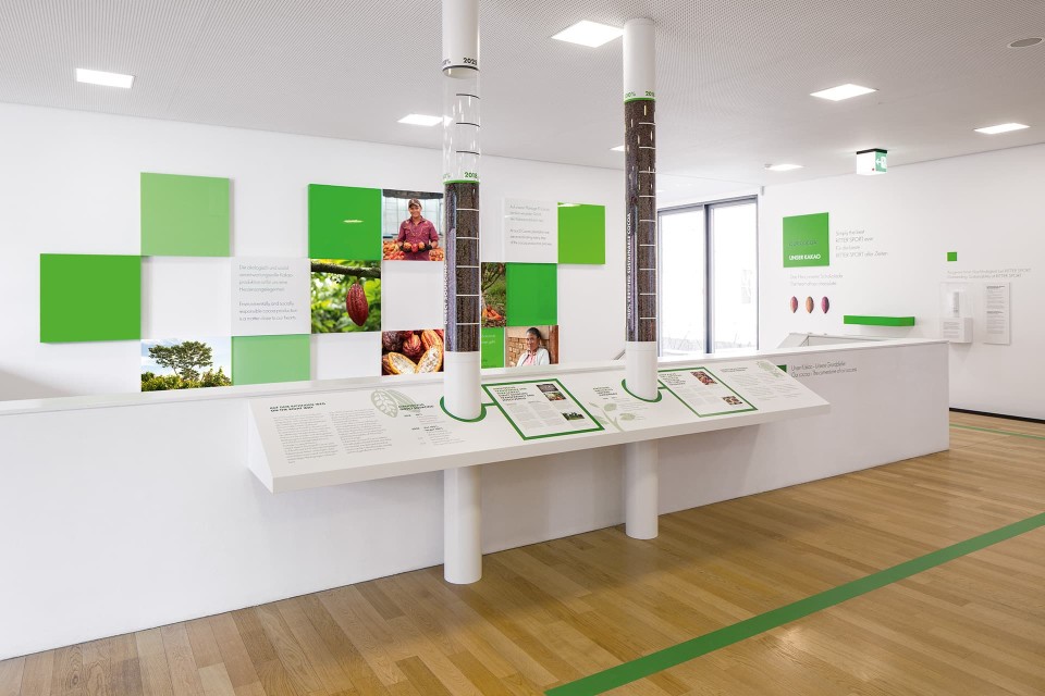 Relaunch und komplette Neugestaltung der erstmalig 2012 von uns konzipierten Ritter Sport SchokoAusstellung im Museum Ritter, Waldenbuch. Inhaltliche Neuausrichtung auf den Schwerpunkt: Unser Kakao.